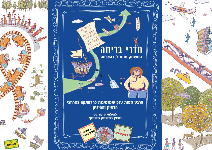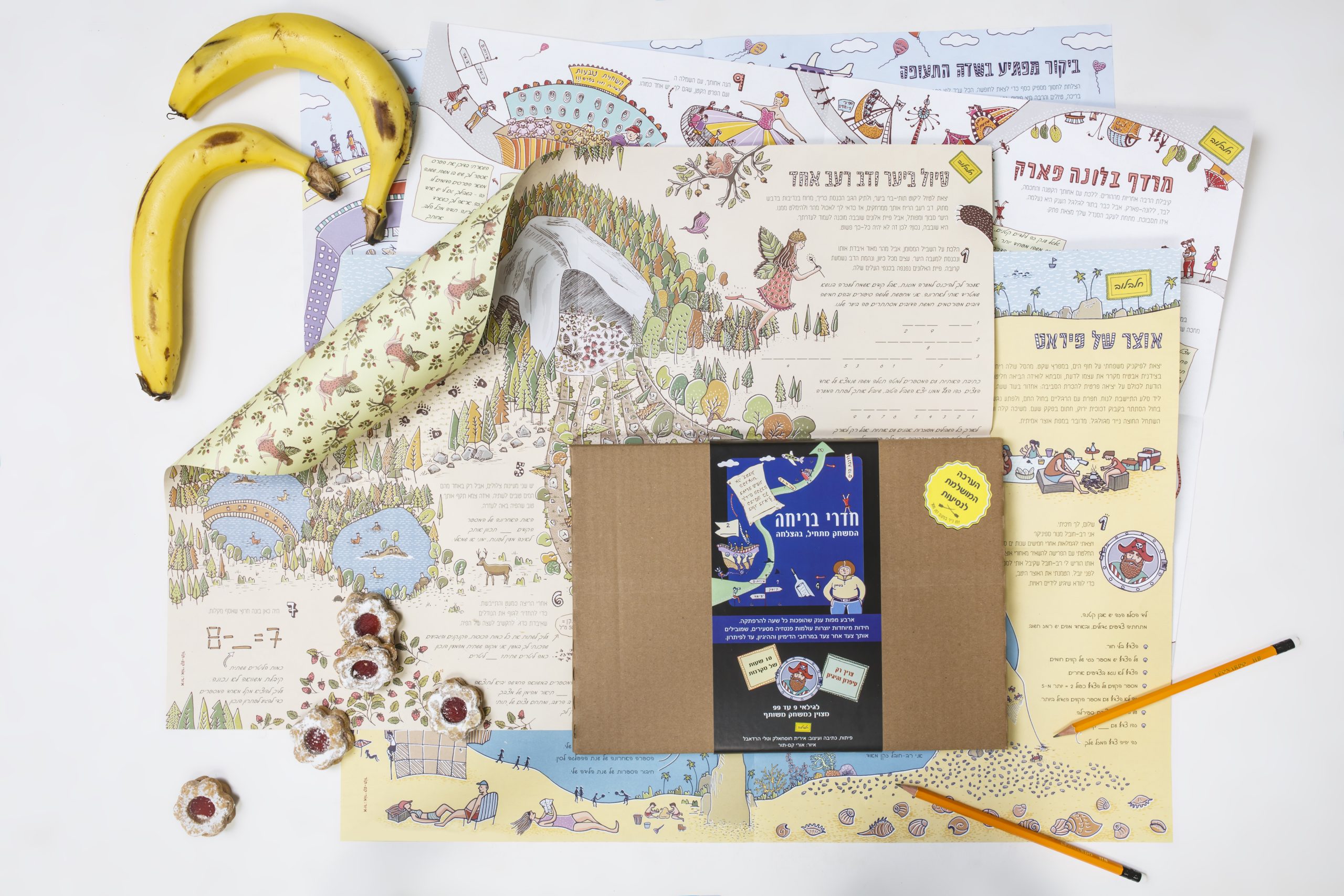 בתוך המארז ארבעה פוסטרים (גודל כל אחד מהם: 42X60 ס"מ). ארבעת הנושאים: טיול ביער ודוב רעב אחד, מרדף בלונה פארק, אוצר של פיראט בחוף הים, ביקור מפתיע בשדה התעופה.